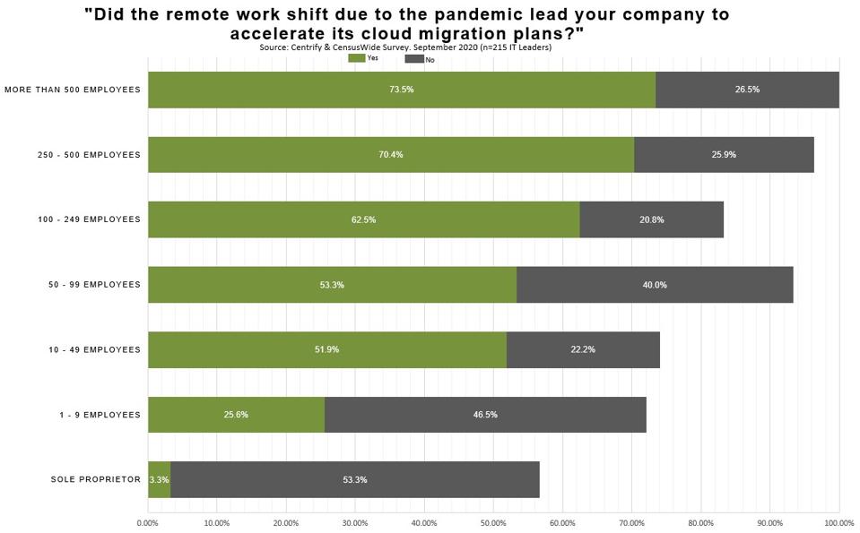 - 73% of enterprises (over 500 employees) accelerated their cloud migration plans to support the shift to remote working across their organizations due to the pandemic.
