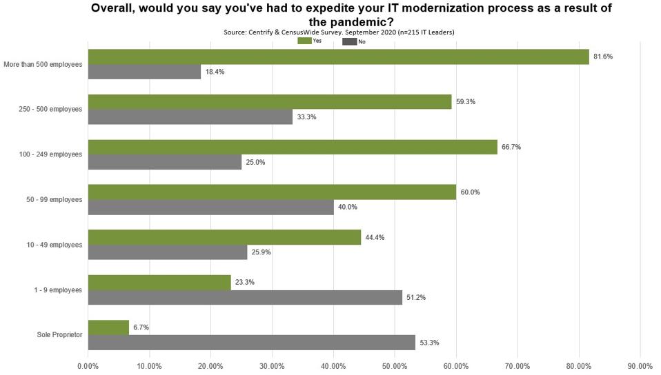 - 81% of enterprises accelerated their IT modernization processes due to the pandemic.